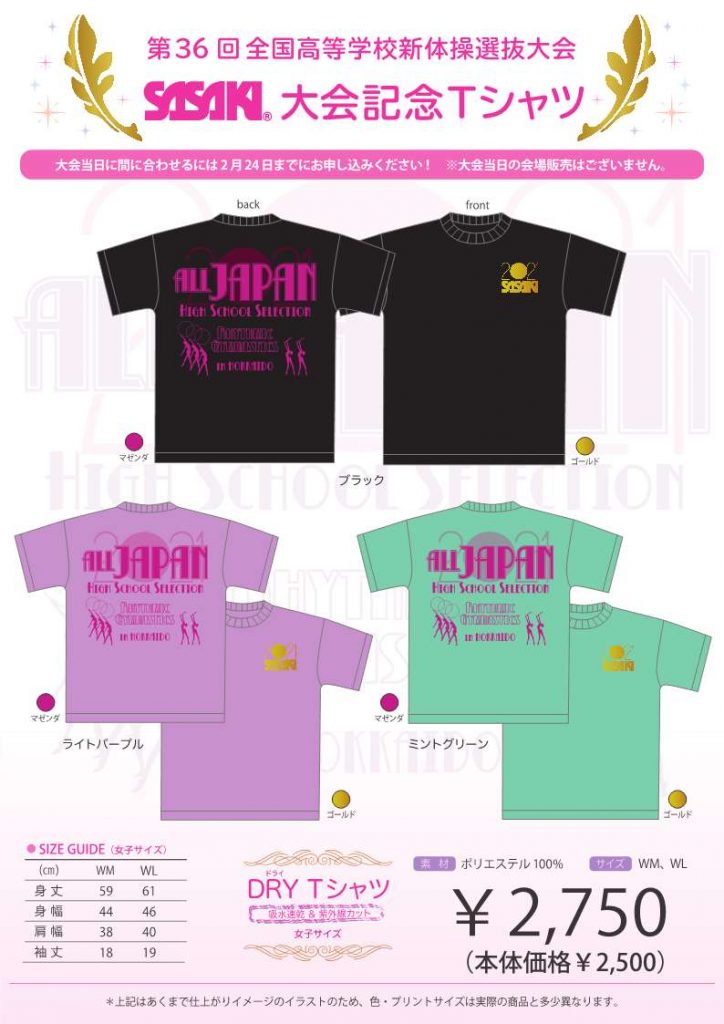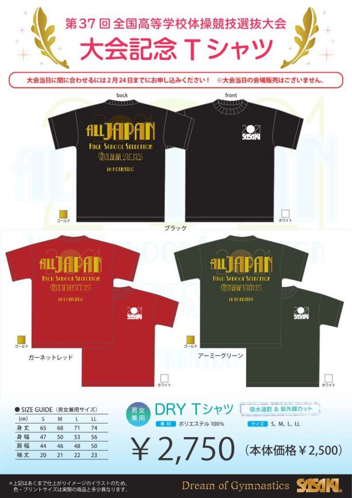 2021年2月16日 / 最終更新日時 : 2021年2月16日 聡 選抜大会 ササキスポーツより大会記念Tシャツの案内高体連体操専門部の認定指定工場のササキスポーツより大会記念Tシャツの案内が届きました。多くのご利用をお願い申し上げます。1.体操競技記念Tシャツ、カタログ、参加申込はこちらから2.新体操記念Tシャツ、カタログ、参加申込はこちらから\ 最新情報をチェック /FacebookXBlueskyHatenaCopy
