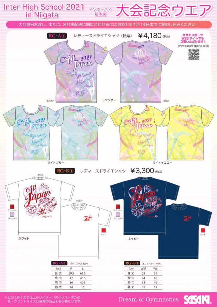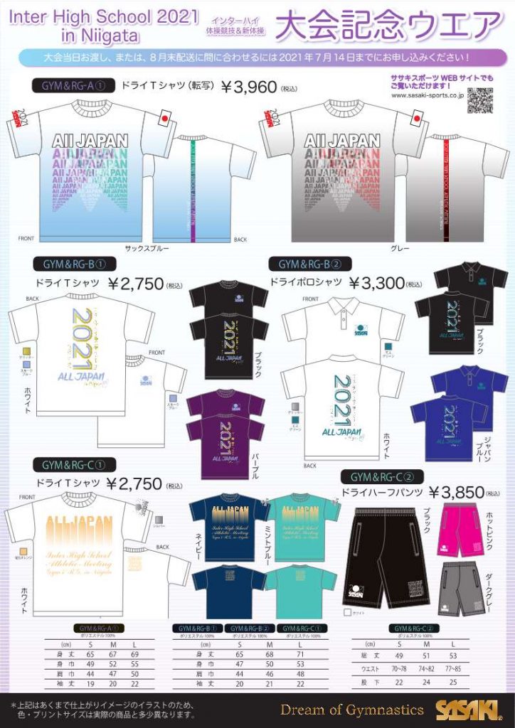 2021年7月6日 / 最終更新日時 : 2021年7月6日 聡 インターハイ ササキスポーツより大会記念ウエアの案内高体連体操専門部の認定指定工場のササキスポーツより大会記念ウエアの案内が届きました。多くのご利用をお願い申し上げます。1.体操競技&新体操 記念ウエア、カタログ、参加申込書はこちらから1.新体操 記念ウエア、カタログ、参加申込書はこちらから\ 最新情報をチェック /FacebookXBlueskyHatenaCopy